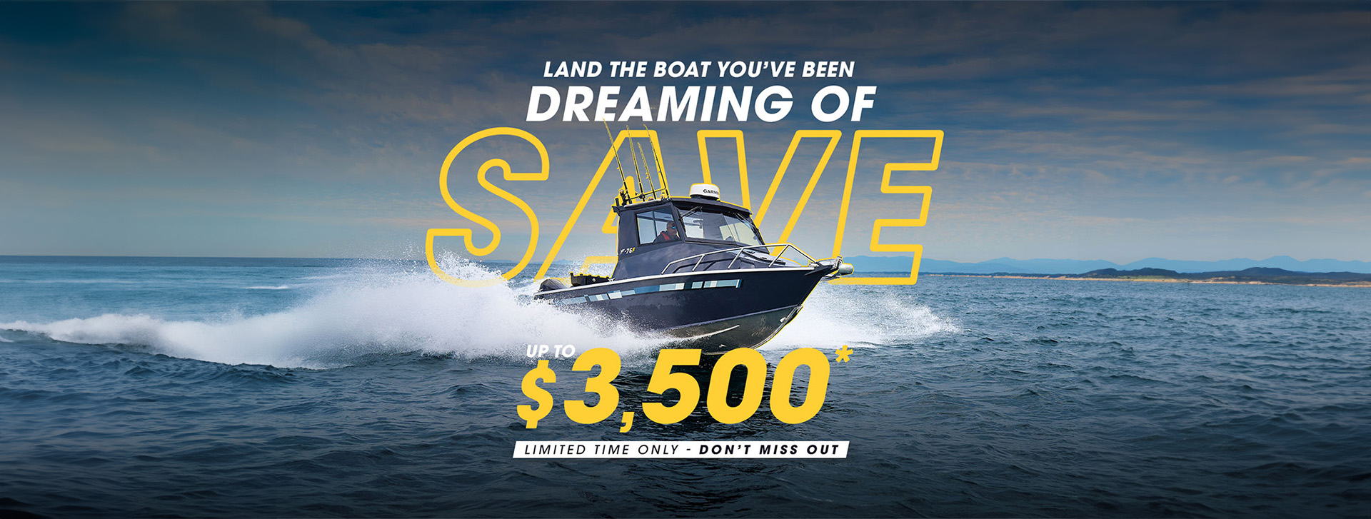 *Offer available on current stock and new orders for Yellowfin Plate Boats models from 5.8m – 7.6m inclusive (based on model name not hull measurement). Offer excludes all other Yellowfin Plate Boats model ranges. Eligible models must have been purchased directly from a certified Yellowfin Plate Boats. Offer is not to be used in conjunction with any other offers or rebates. The offer must be provided to the buyer at the time of retail and cannot be claimed for orders already confirmed with a contract of sale. All contracts of sale must be submitted by May 9th 2026. All boats must be warranty registered with complete customer details; including address, valid mobile and email address, etc., by the dealer no later than the 30th of November 2026 to be eligible for the rebate. Yellowfin Plate Boats is committed to the progressive enhancements of its brands, meeting market demands and leading the industry. Changes to prices and specifications of its boats, parts and accessories are fluid and subject to change. The offer may be subject to change. Offer ends 9th of May 2026.