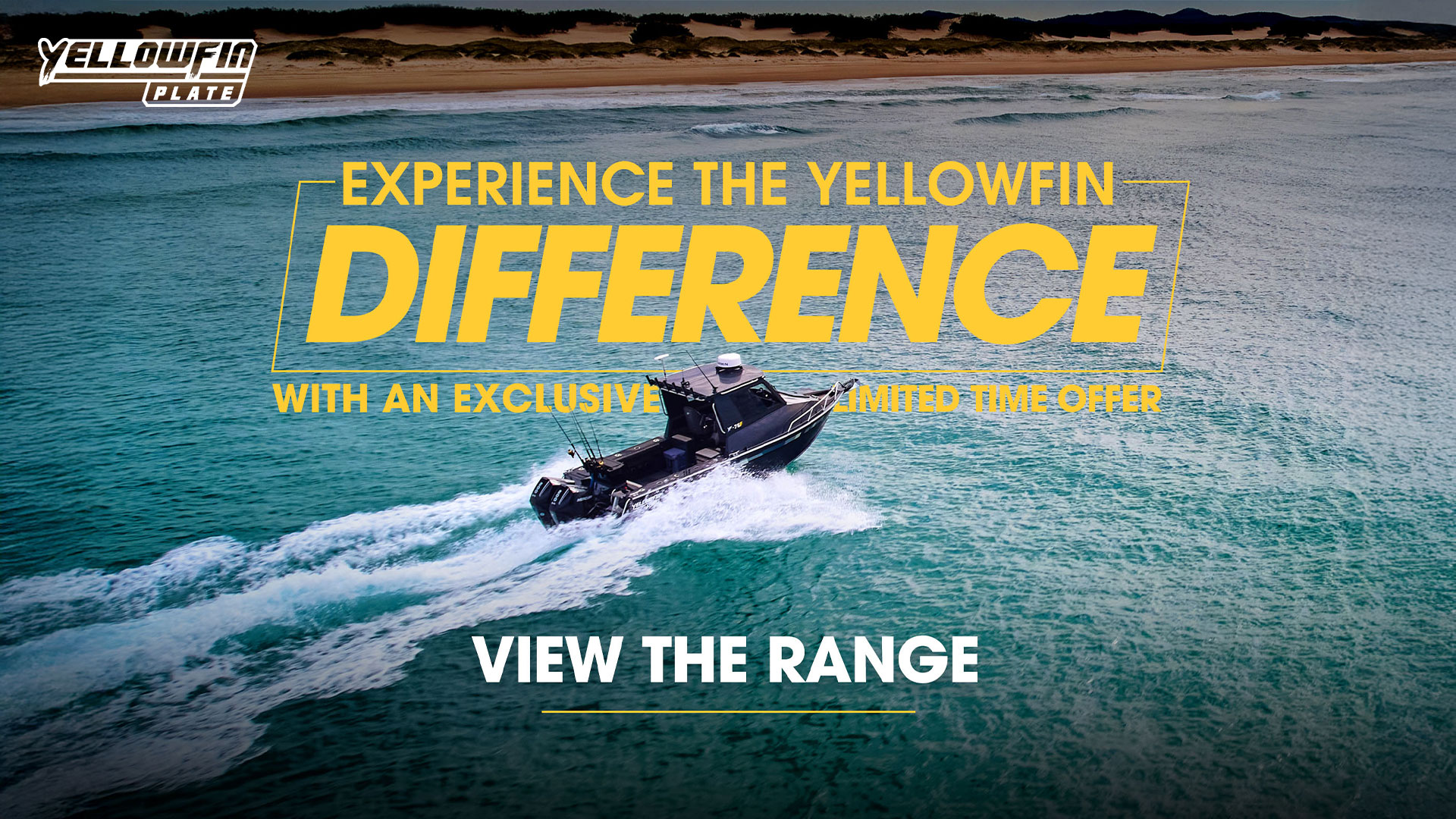 *Offer available on select Yellowfin large and plate models from 5.8m – 7.6m inclusive. Price will vary with model size. Eligible models must have been purchased directly from a certified Yellowfin dealer and must be in-stock or with a factory dispatch date no later than the 23rd December 2025. Offer is not to be used in conjunction with any other offers or rebates. No other program discounts apply with the offer. The offer must be provided to the buyer at the time of retail and cannot be claimed for orders already confirmed with a contract of sale. Offer is for units retailed from 15th November 2025 through to 15th December 2025 inclusive. All contracts of sale must be submitted by 15th December 2025 to be eligible for the rebate. All boats must be warranty registered with complete customer details; including address, valid mobile and email address, etc., by the dealer no later than the 31st of January 2026 to be eligible for the rebate. Yellowfin is committed to the progressive enhancements of its brands, meeting market demands and leading the industry. Changes to prices and specifications of its boats, parts and accessories are fluid and subject to change. The offer may be subject to change, and excludes any units not dispatched, from factory, by the 23rd December 2025. Offer ends 15th of December 2025 or until stock lasts.